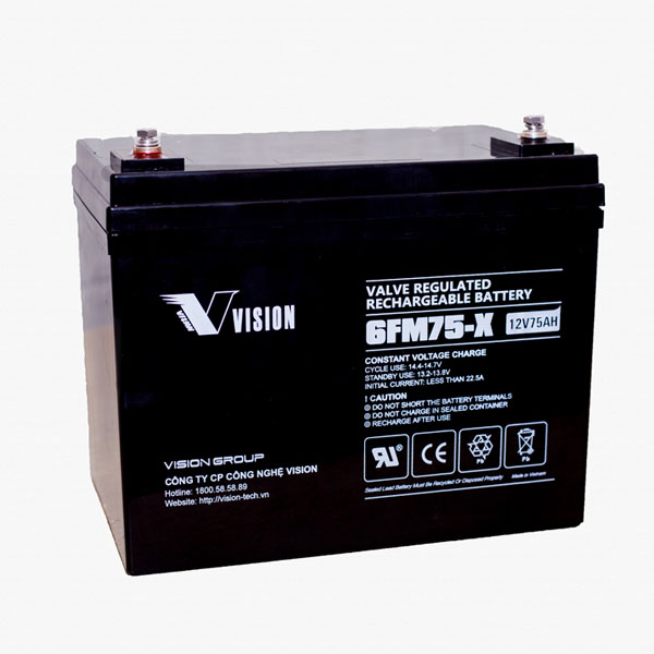 Vision 6FM75‑X là ắc‑quy kín khí công nghệ AGM–VRLA, thiết kế maintenance‑free với dung lượng lớn 75 Ah và điện áp 12 V. Đây là lựa chọn mạnh mẽ cho UPS, hệ thống chiếu sáng khẩn cấp, báo cháy, thiết bị y tế, trung tâm dữ liệu, và các ứng dụng công nghiệp yêu cầu thời gian hoạt động dài và độ bền cao