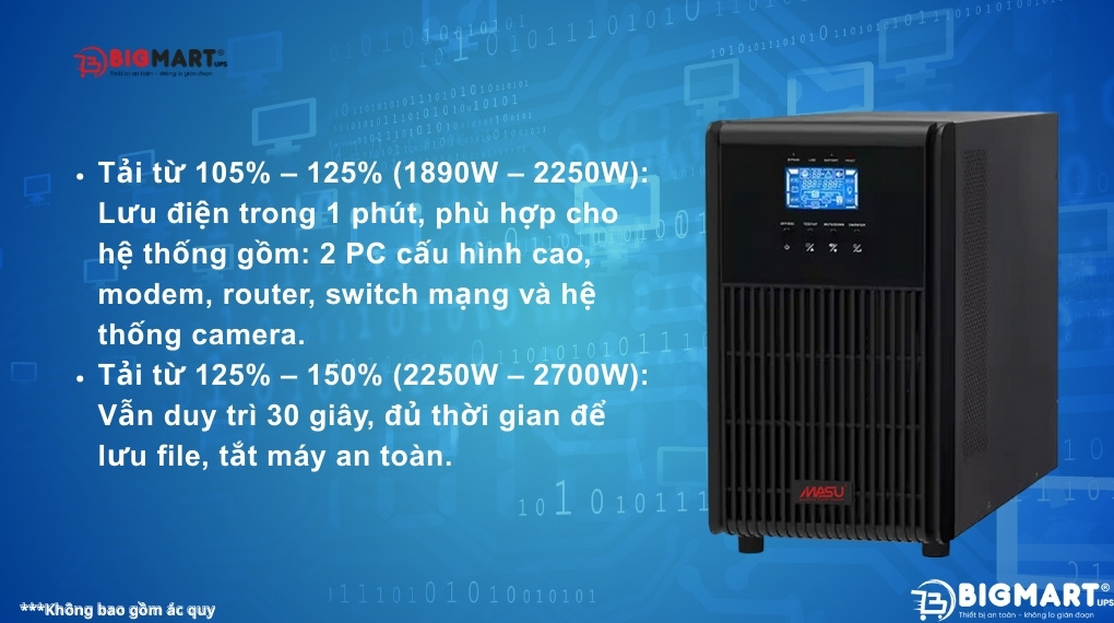 Bộ lưu điện MASU có khả năng duy trì hoạt động ngay cả khi tải vượt quá công suất danh định, cụ thể: