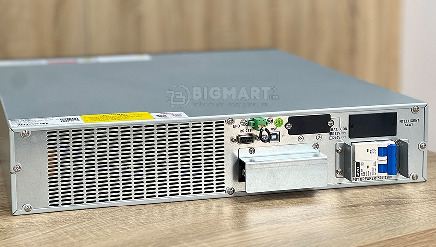Thân UPS và khay ắc quy đều có kích cỡ 2U, khớp với tủ rack.