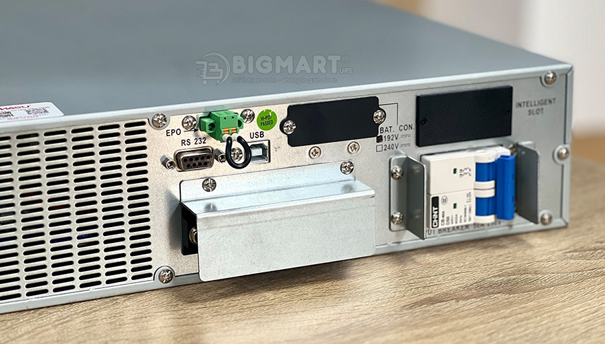 Bộ lưu điện 6000VA được trang bị cổng USB/RS232 giúp người dùng dễ dàng kết nối thiết bị. Tích hợp khe cắm thông minh NMC Card, Modbus Card, Relay Card có thể giám sát, điều khiển từ xa.