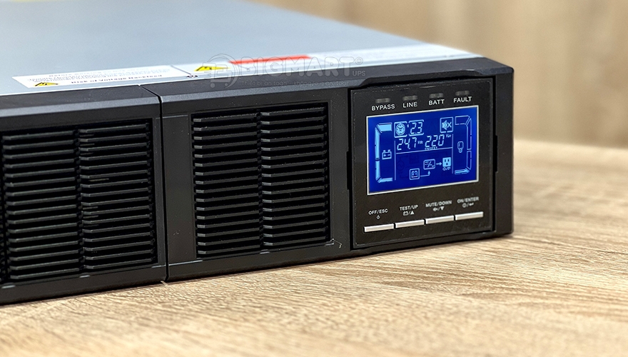 Bộ lưu điện UPS Online sở hữu màn hình LCD thông minh, rõ nét hiển thị đầy đủ các thông số kỹ thuật điện áp đầu ra, điện áp đầu vào, dung lượng ắc quy dễ dàng theo dõi và điều chỉnh.