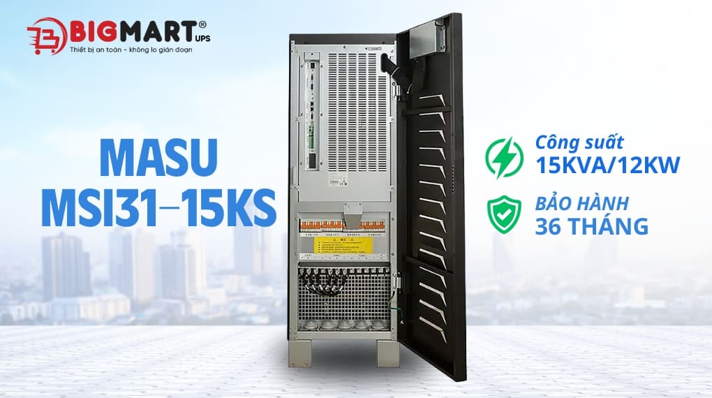 Masu MSI31 – 15KS là dòng bộ lưu điện công nghiệp (UPS Online) cao cấp được thiết kế dành riêng cho các hệ thống cần nguồn điện ổn định và liên tục. Với công suất 15KVA/12KW và công nghệ chuyển đổi kép (Double Conversion), thiết bị đảm bảo cung cấp dòng điện sạch, ổn định và không gián đoạn cho các thiết bị nhạy cảm. Đây là giải pháp lý tưởng cho trung tâm dữ liệu, nhà máy, bệnh viện, hệ thống an ninh và các ứng dụng công nghiệp.