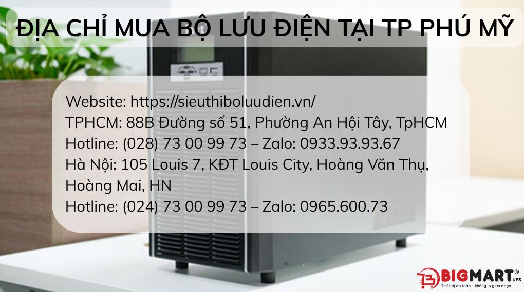 Liên hệ thông tin sau nếu bạn có nhu cầu tìm mua bộ lưu điện công nghiệp hoặc bộ lưu điện dân dụng tại TP Phú Mỹ: